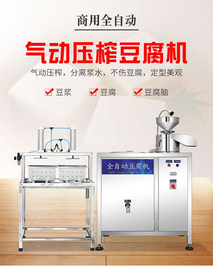 XZ-100型全自動(dòng)豆腐機(jī),商用全自動(dòng)氣動(dòng)壓榨豆腐機(jī)氣動(dòng)壓榨,分離漿水,不傷豆腐,定型美觀。