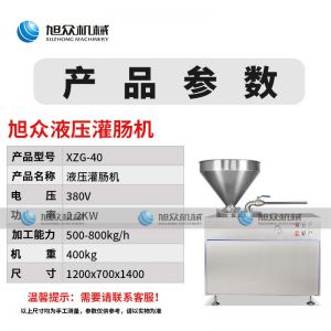 名稱XZG-40液壓灌腸機 電源380V 功率2.2KW 產量500800kg/h 尺寸1200X700X1400m 重量400kg 規(guī)格聯(lián)系銷售員 其他