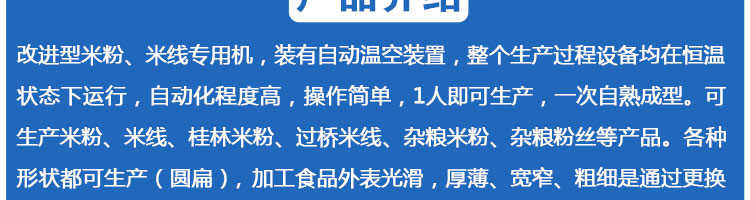SZ-60多功能米粉機(jī),生產(chǎn)多樣性可生產(chǎn)米粉、米線、粉絲、粉條、、年糕、玉米面條、各種雜糧粉絲、各種面條、雜糧面條、彩色面條以及以紅薯、玉米、大豆、蠶豆等制成淀粉為原料的等多種食品而且每種食品厚薄、粗細(xì)等規(guī)格可根據(jù)需要任意調(diào)整。