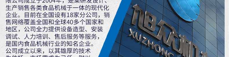 廣州旭眾食品機(jī)械有限公司是一家集科研開發(fā),生產(chǎn)設(shè)計(jì),營銷服務(wù)為一體的現(xiàn)代化生產(chǎn)企業(yè)。現(xiàn)代化生產(chǎn)車間,精湛制造技術(shù),所產(chǎn)機(jī)械歷經(jīng)市場重重考驗(yàn),不斷贏得海內(nèi)外客戶的贊譽(yù)。