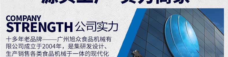 廣州旭眾食品機械有限公司是一家集科研開發(fā),生產設計,營銷服務為一體的現代化生產企業(yè)?,F代化生產車間,精湛制造技術,所產機械歷經市場重重考驗,不斷贏得海內外客戶的贊譽。