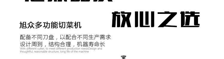 名稱XZ-682多功能切菜機 電源220/380V(見機器銘牌) 功率0.75kw 產(chǎn)量200-1000千克/小時 尺寸770*460*800mm 重量140kg 規(guī)格標配刀具尺寸:切絲:3mm,切片:3mm,切?。?0*10mm??蛇x的刀具尺寸:切絲:4、5、6mm 其他
