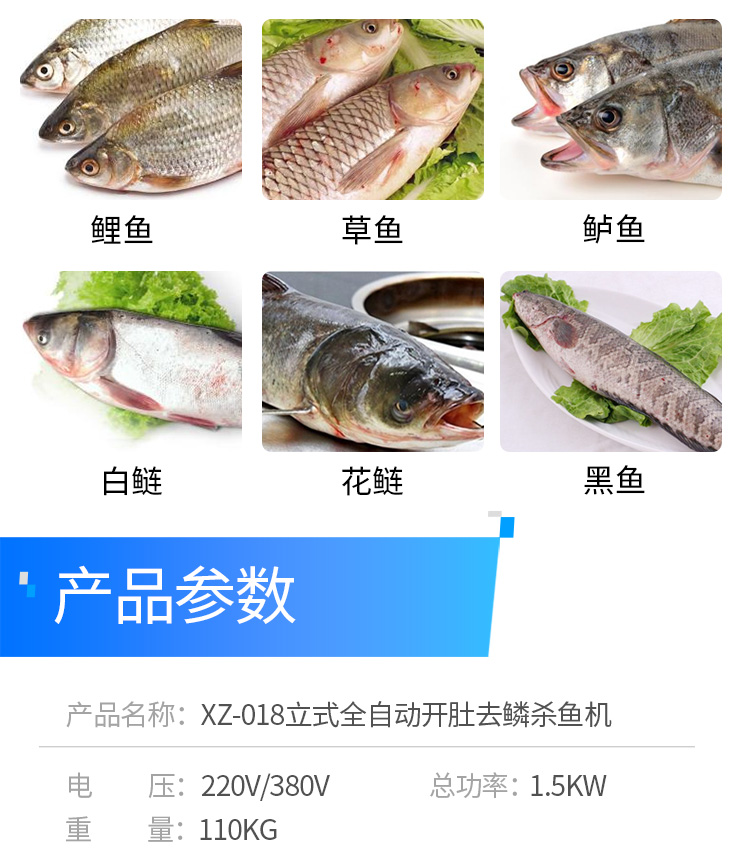 名稱XZ-018殺魚機(jī) 電源220/380V 功率1.5KW 產(chǎn)量 尺寸545*525*850MM 重量110KG 規(guī)格 其他